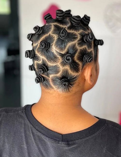 The compact knots are lightweight and protective, helping to minimize daily styling stress. Creative parting patterns elevate the look beyond classic Bantu knots. This style is ideal for showcasing confidence and cultural beauty.