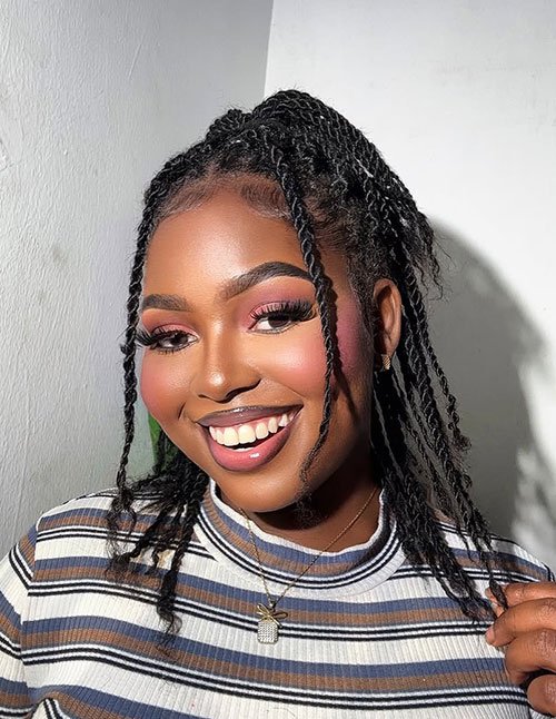 The small twist size provides fullness without excessive weight. Its low-maintenance nature makes it suitable for long-term protective wear. This look balances texture definition with everyday convenience.