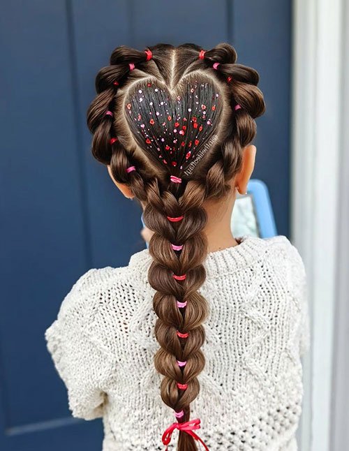 Need something that looks cute but stays practical all day? This is it. Low braided pigtails sit closer to the neck, so they feel comfortable and less tight on the scalp. They’re perfect for long school days and easily count as school hairstyles for shoulder length hair.