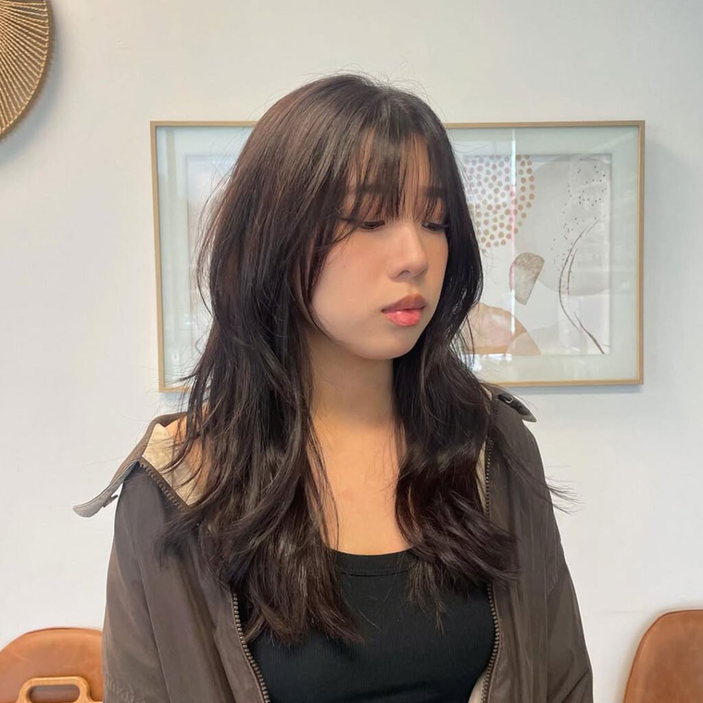 Long Layered Korean Wolf Cut with Soft Curtain Bangs