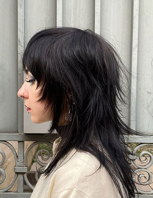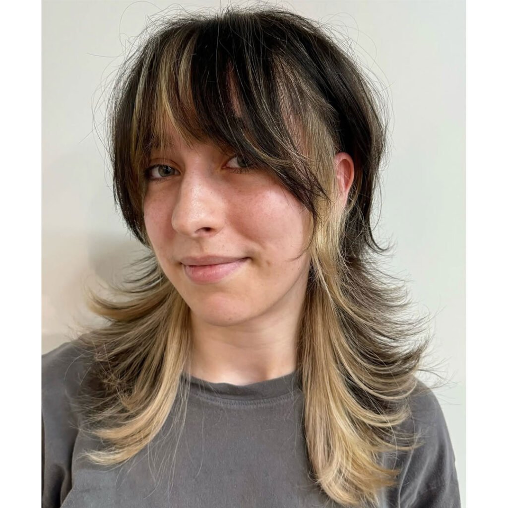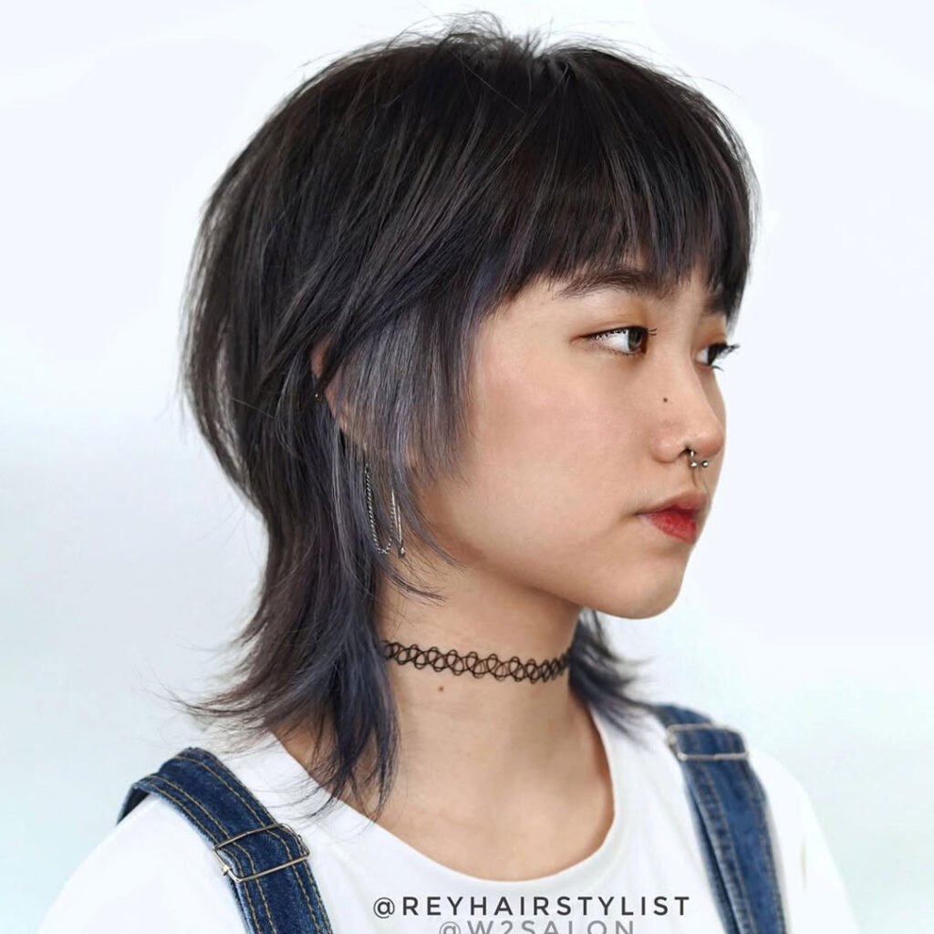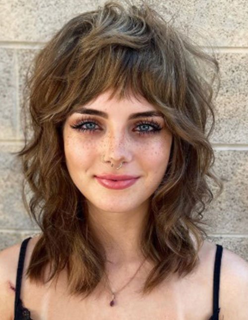 Face-framing bangs can completely transform a haircut, and in this wolf cut, they’re the star. The choppy layers add movement and edge, while the bangs highlight your eyes and cheekbones. This combination is great for balancing out sharp features or adding definition to softer face shapes.