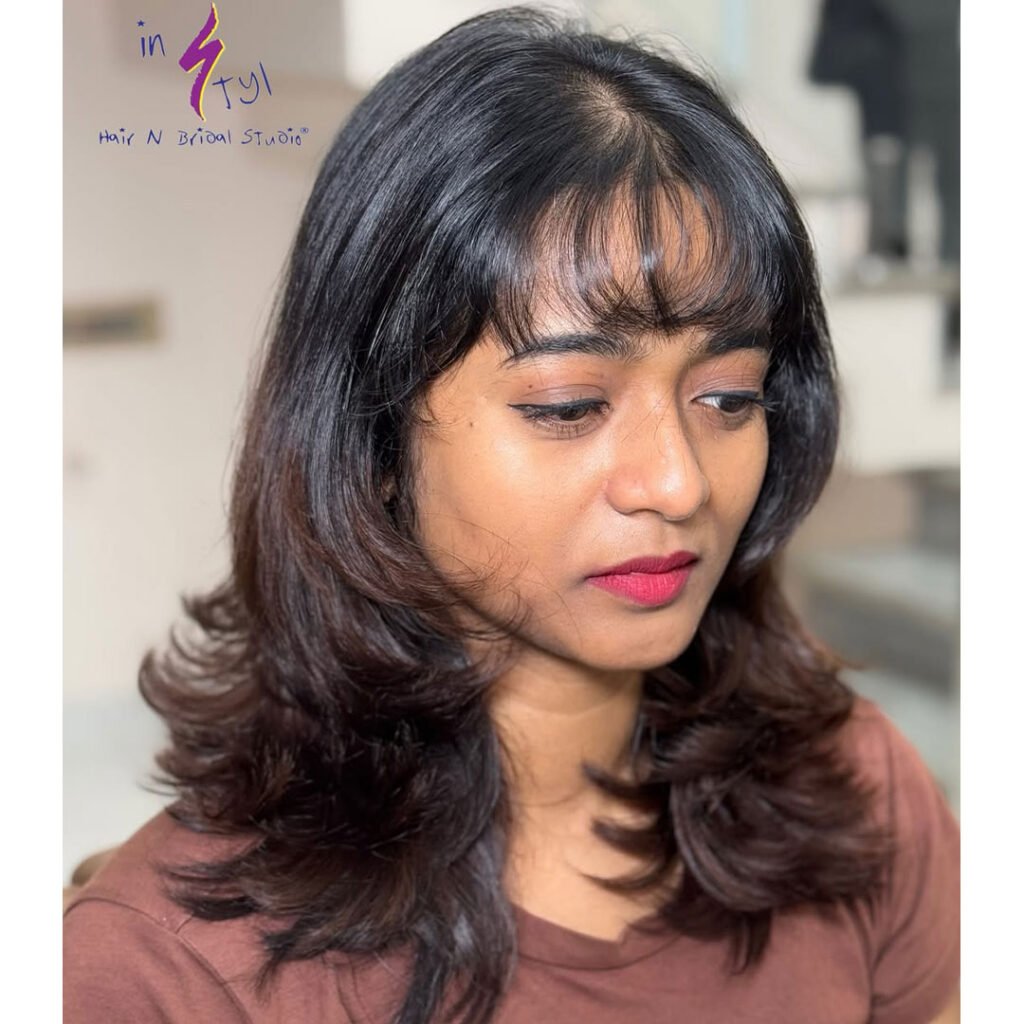 Fresh, breezy, and full of charm, the medium-layered wolf cut with wispy bangs is perfect for those who want something light yet stylish.