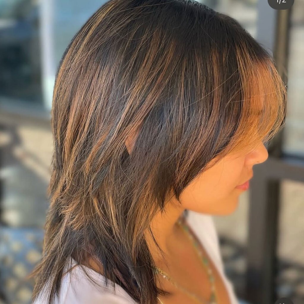 Not every wolf cut needs loud color to make an impact. This version uses soft brown highlights to add gentle depth and warmth to the layers.