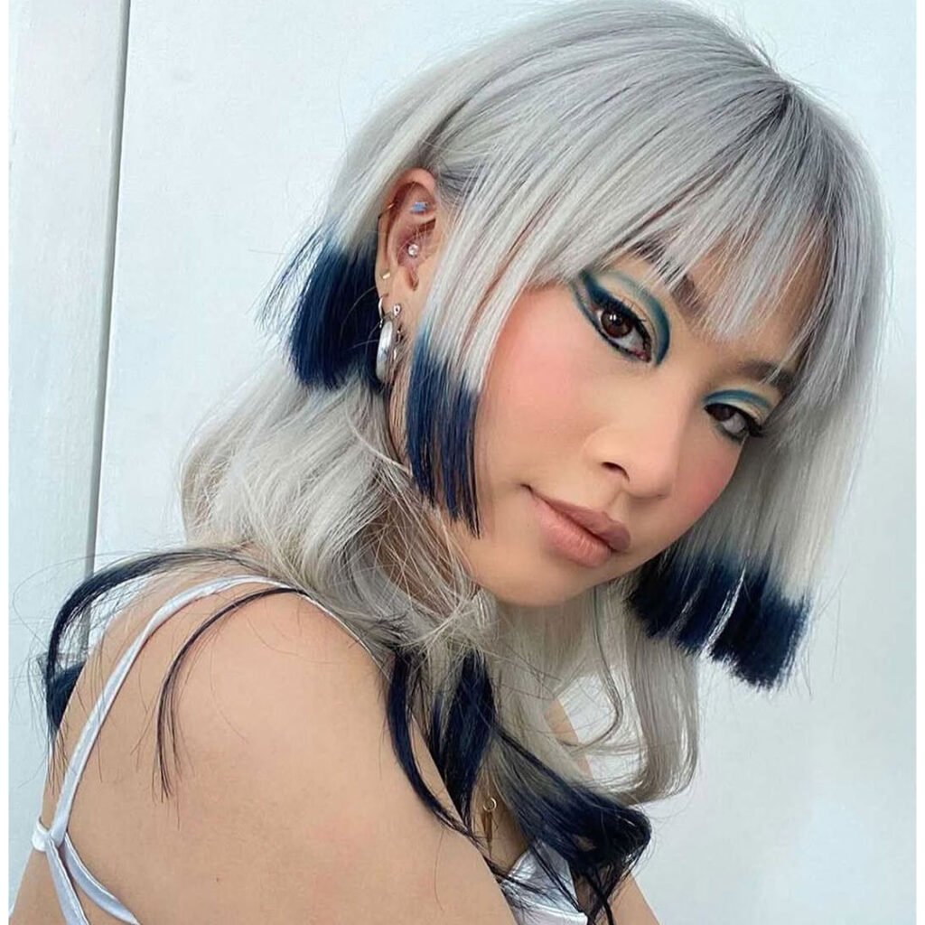 If you love futuristic vibes, this wolf cut with a silver base and bold blue block accents feels straight out of a sci-fi movie. The icy silver sets the perfect cool-toned canvas, while the chunky blue sections add a pop of electrifying contrast.
