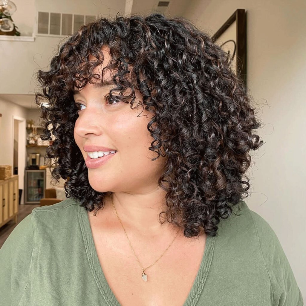 This hairstyle brings out the best in curls by combining playful volume with face-framing bangs. The bouncy curls sit beautifully at chin or shoulder length, giving off a lively yet polished look. The bangs add softness, balancing volume and highlighting the eyes.