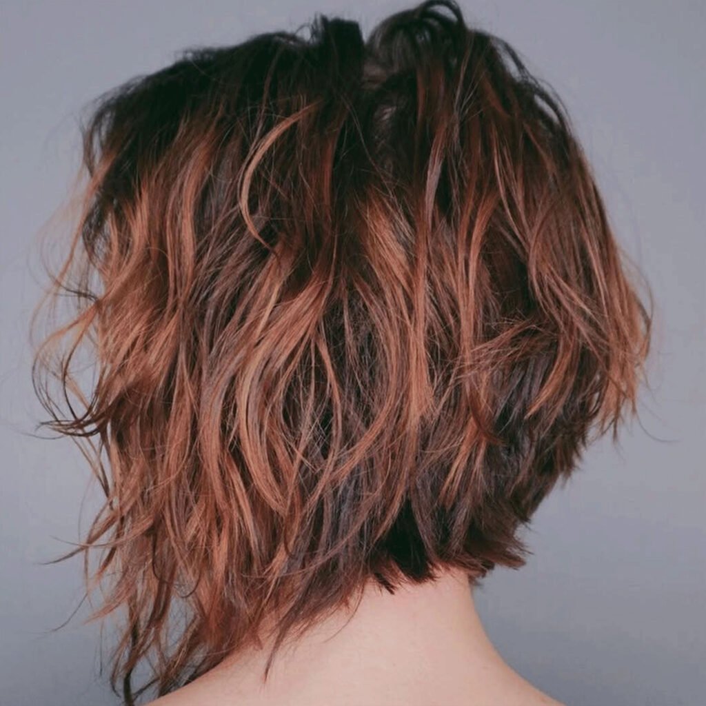 This style combines a bob cut with shaggy layers for natural bounce and flow. The uneven layers highlight curl patterns and give hair lightness.