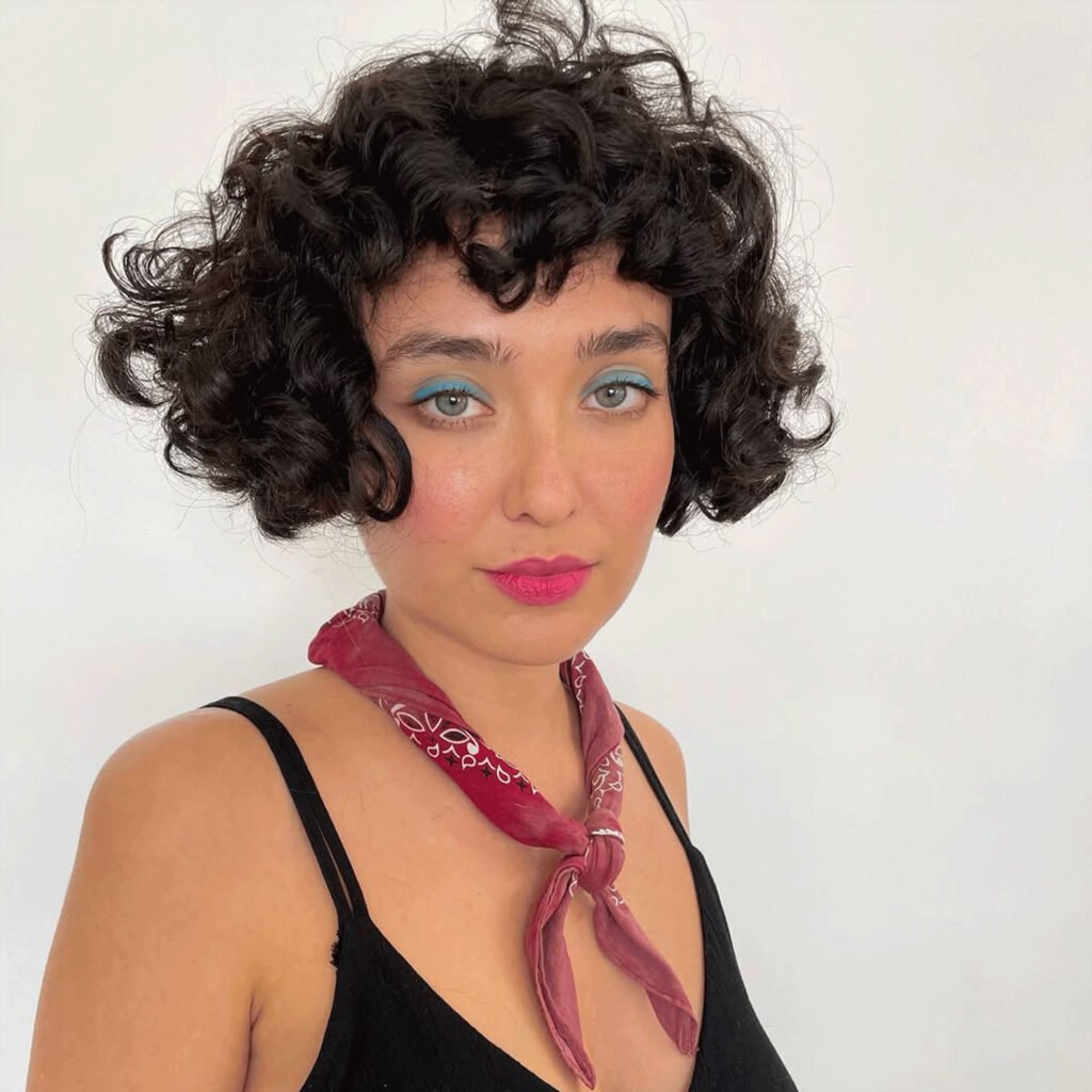 This hairstyle keeps curls short, chic, and easy to manage. The cropped length creates a clean frame around the face and feels light and breathable.