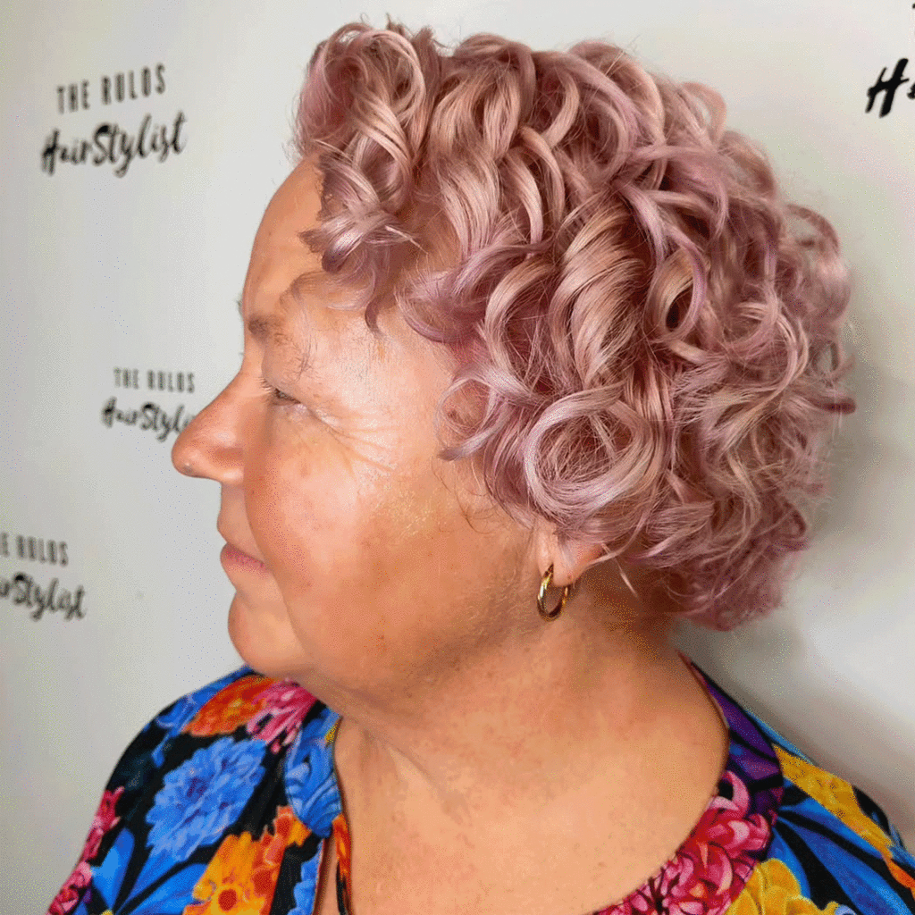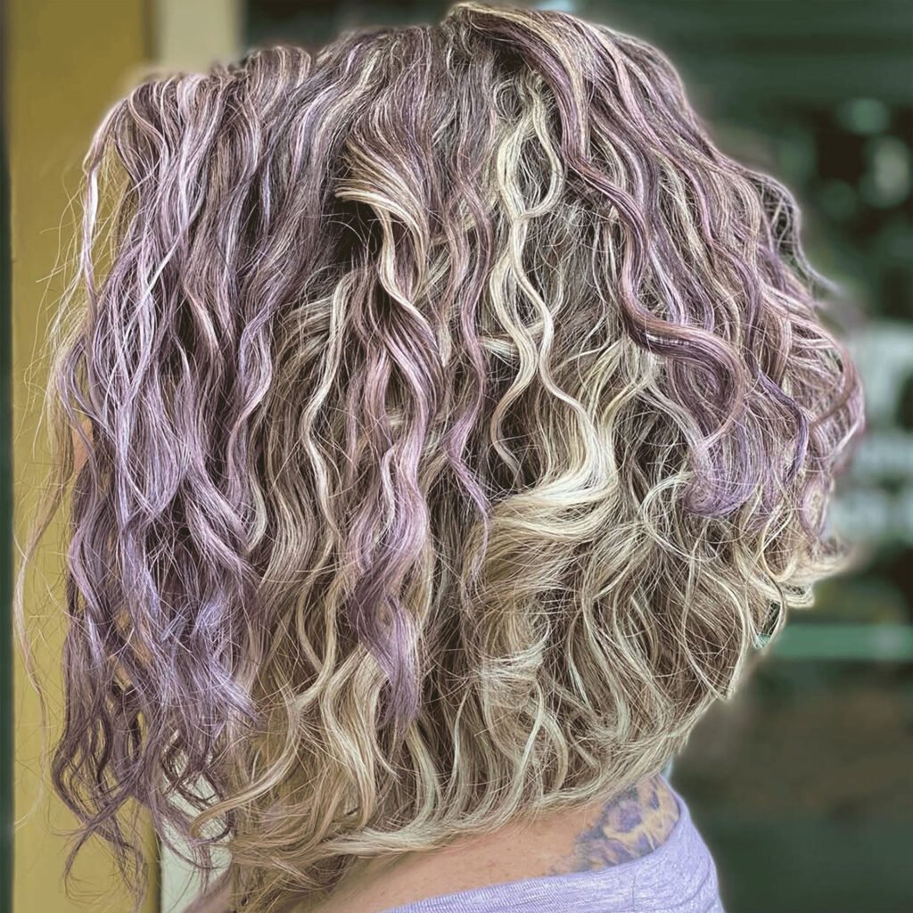 Curl products keep the shape defined and the color fresh. This hairstyle is perfect for someone who loves playful, creative looks.