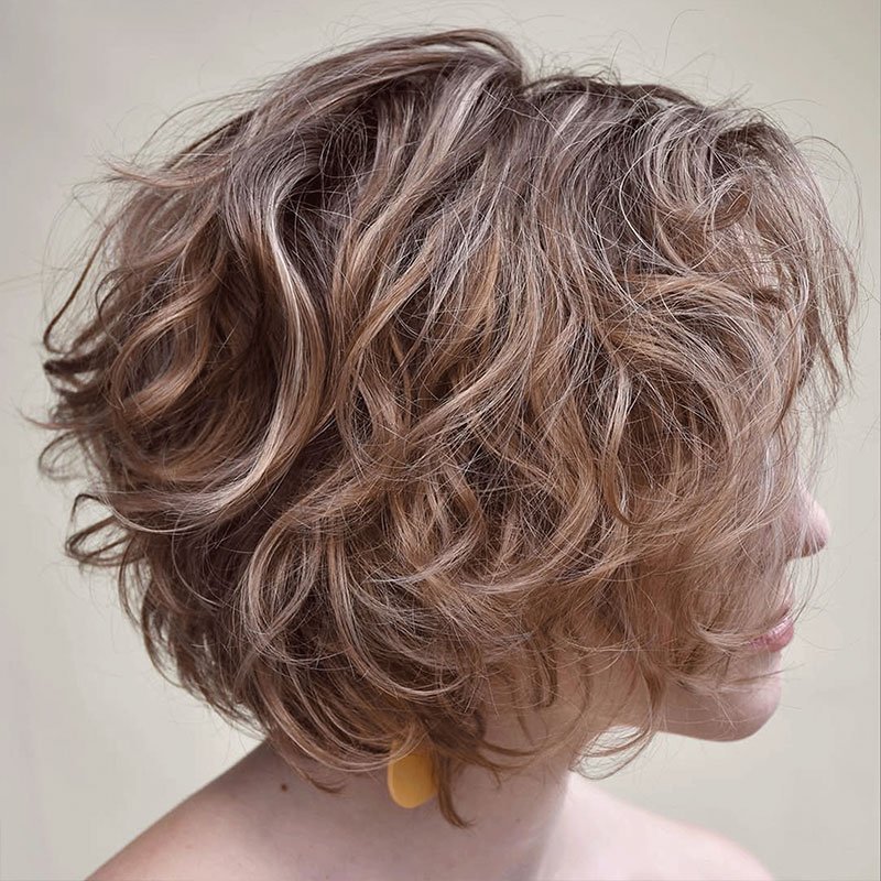This bob celebrates relaxed texture with loose curls styled in a tousled way. It creates a beachy, carefree feel while keeping hair soft and full.
