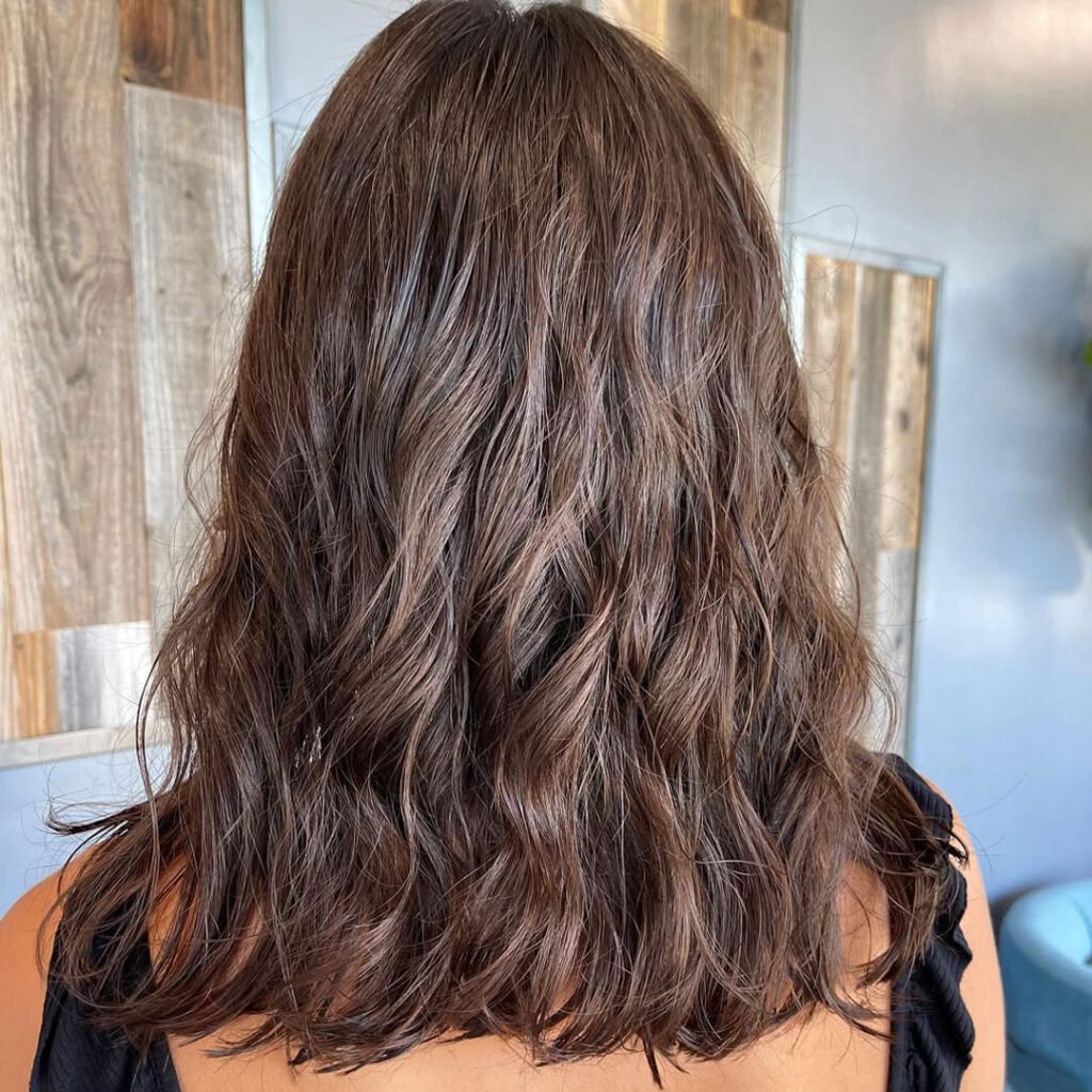 The waves are loose, fluffy, and full of gentle motion, ideal for those who love subtle definition. The root shadow softens the transition between your natural roots and lighter ends, making it super low-maintenance. This style is perfect for everyday elegance and looks even better over time.