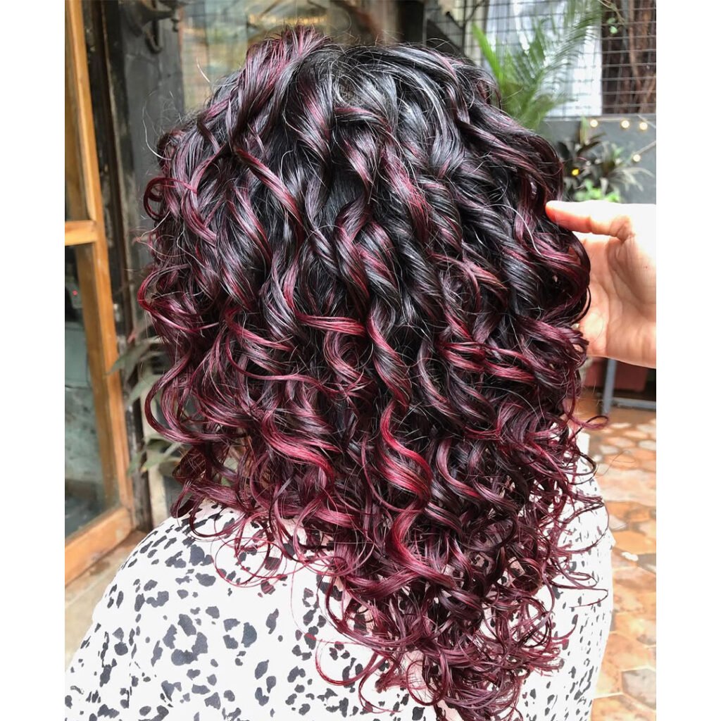This color-curl combo is perfect for making a bold statement without compromising on elegance. The spirals hold their shape beautifully, and the burgundy shade adds a warm, vibrant glow. Whether under natural sunlight or evening lights, this style always brings drama in the best way.