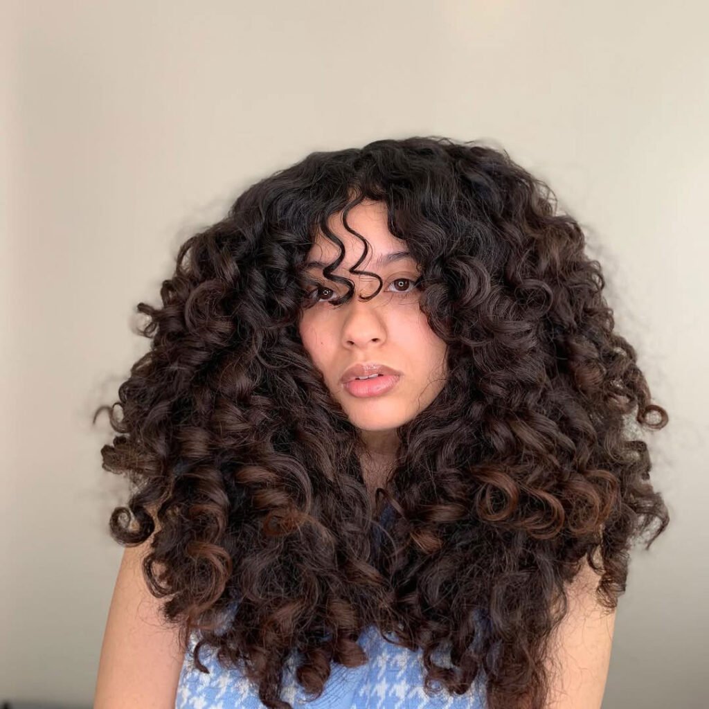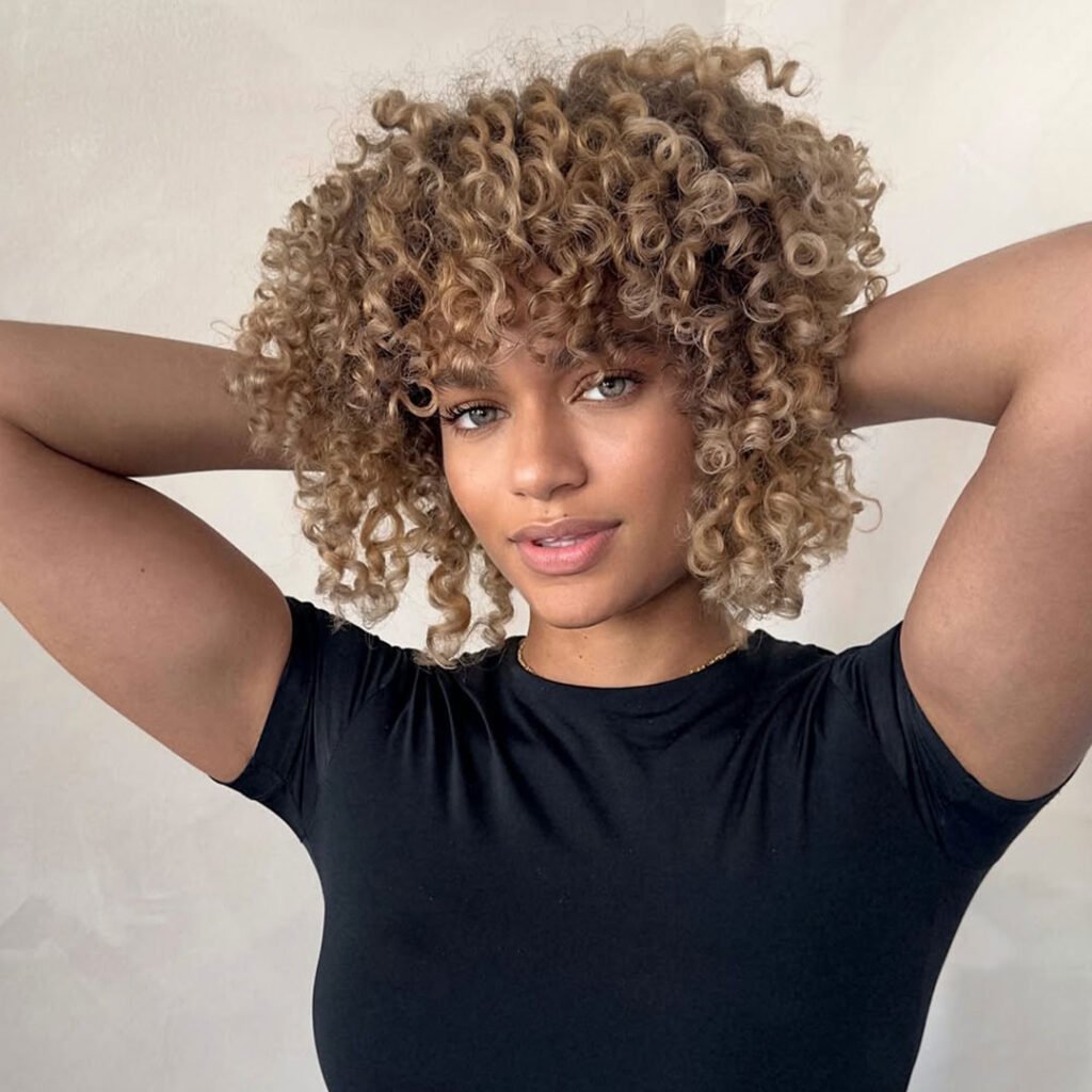It’s perfect for those who want bold energy without the commitment of long hair. Finger styling and a light curl spray are all it takes to keep it looking effortless. This cut is artsy, trendy, and made for the girl who loves a little chaos with her curls.
