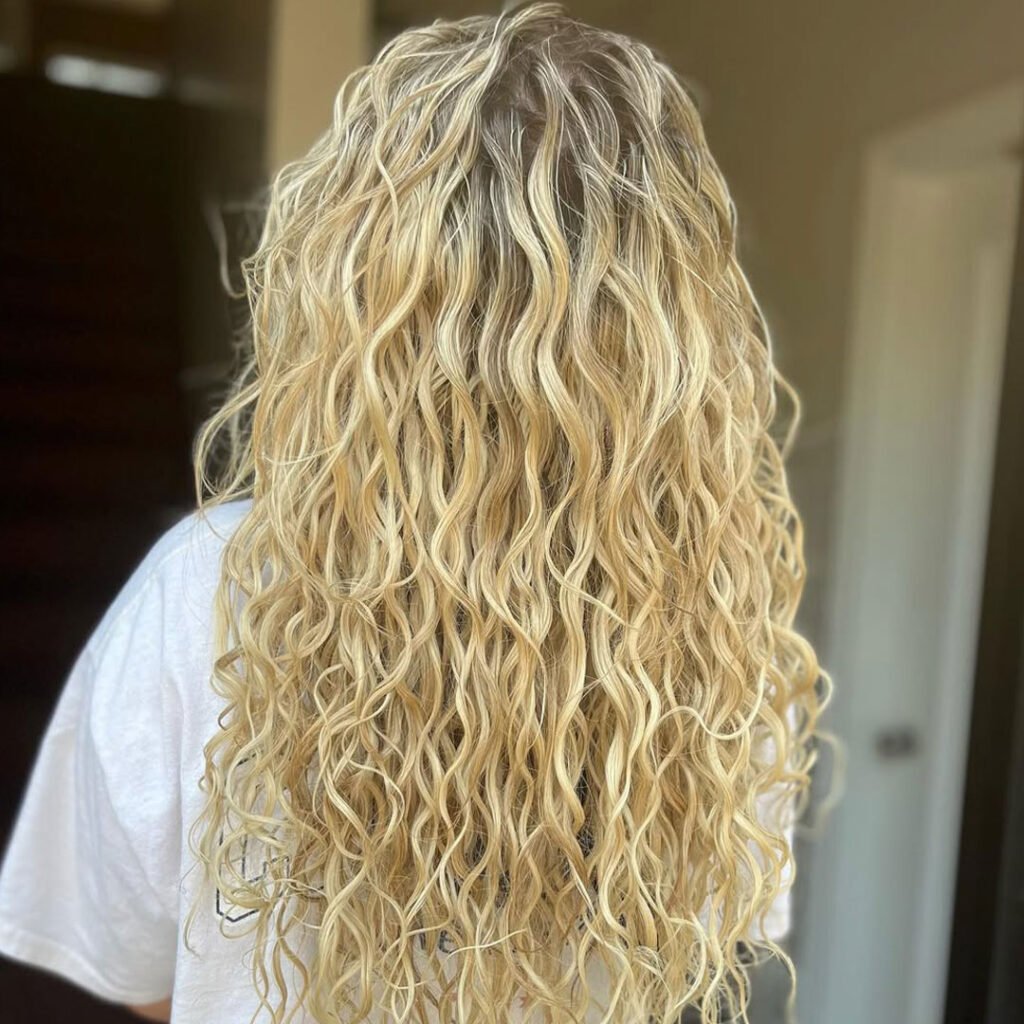 It’s perfect for anyone who wants definition without a tight curl pattern. The light blonde tone adds brightness and dimension, making the waves shimmer with every move. This look works beautifully for warmer months or when you just want something gentle and graceful. Think soft glam, every day.