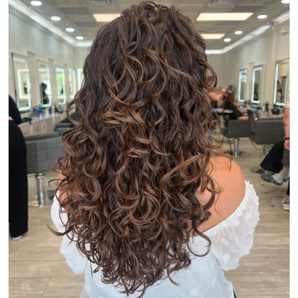 Looking for big, bold, and bouncy? These layered curls are the definition of volume done right. The layers add shape and dimension, so your hair doesn’t just sit—it floats and moves with every step.