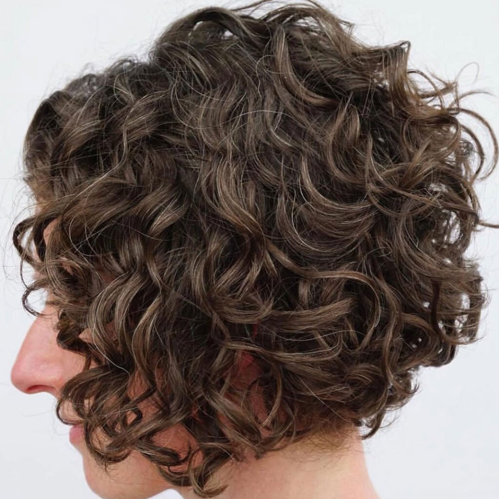 Edgy meets curly in the best way with this inverted bob. The back is cut shorter and stacked, gradually getting longer in the front, which gives the curls extra bounce and lift. It’s modern, stylish, and full of movement.