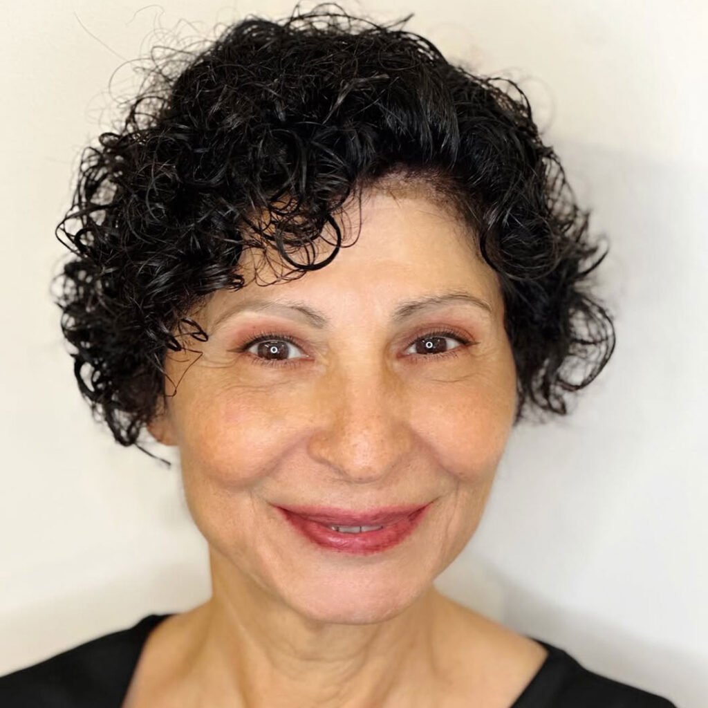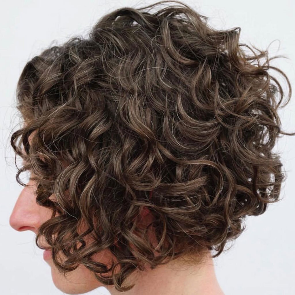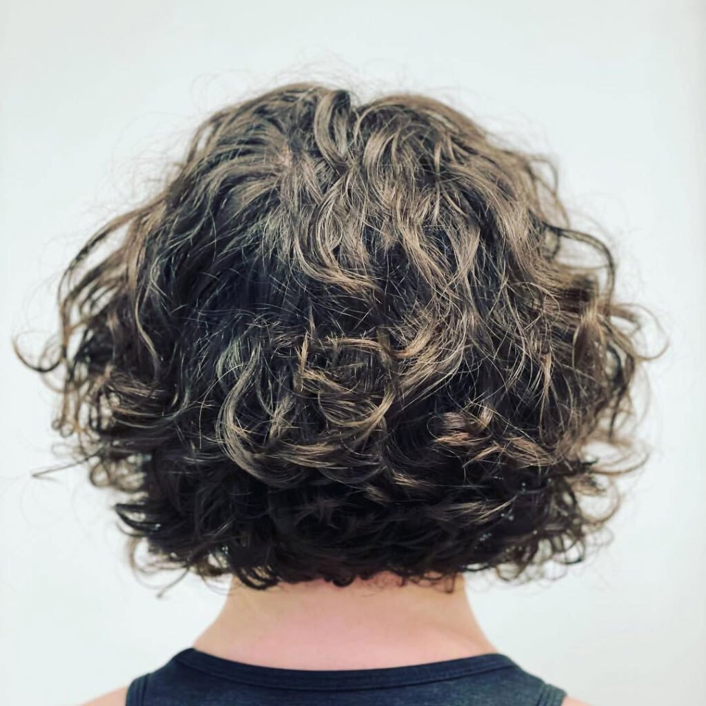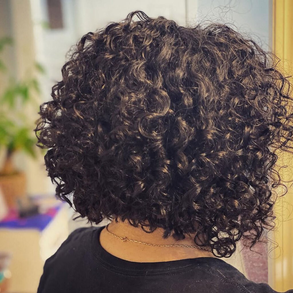 It’s perfect for someone who wants volume and shape without going too short. The layered back lifts the curls, making the whole style feel light and bouncy.