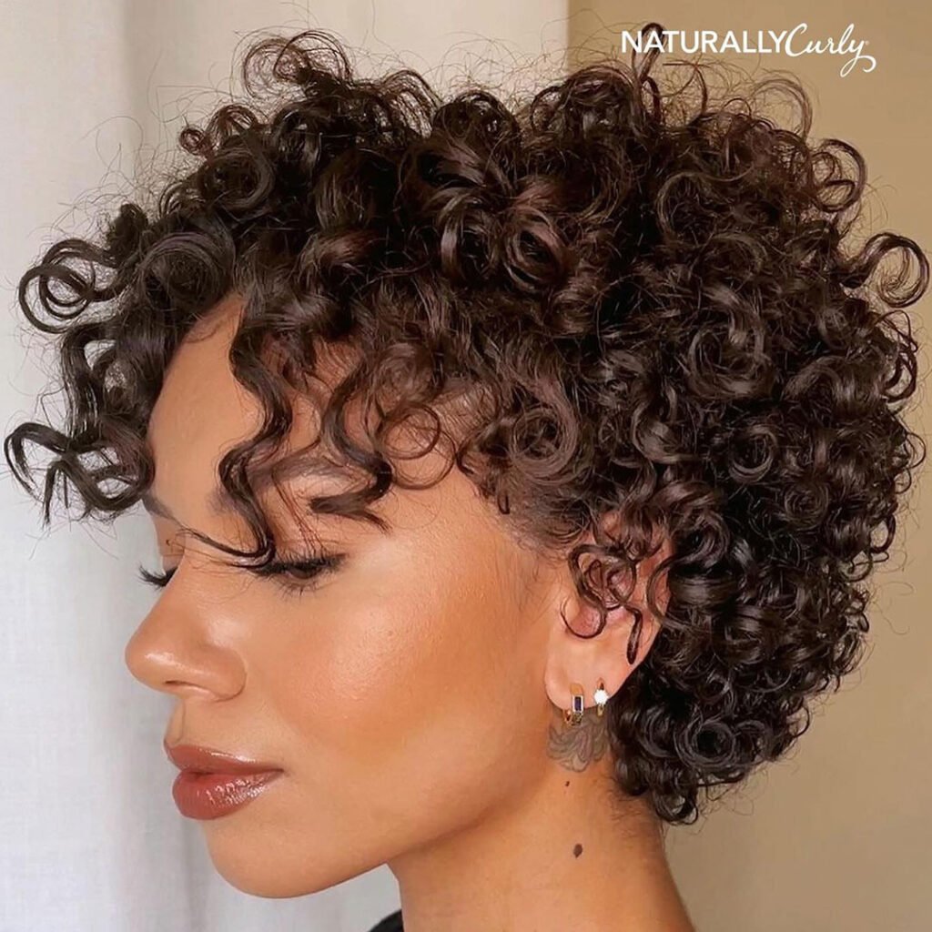 This cut is great if you love lightweight hair with a fashionable edge. It keeps your routine simple while letting your curls take center stage. The curly pixie always adds a little extra charm to any outfit.
