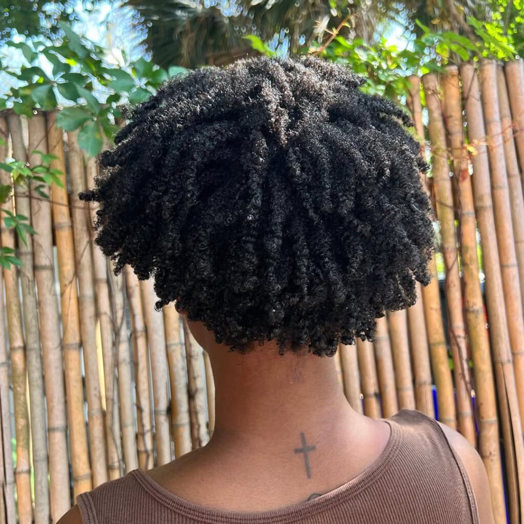 After unraveling the twists, you get soft, springy curls that feel both airy and controlled. The tapering around the edges keeps the shape neat while still playful.