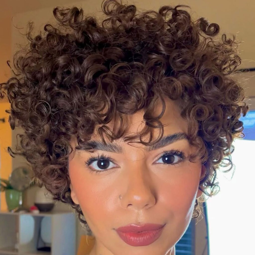 Short, sweet, and full of texture — the curly pixie cut is perfect for showing off natural curls in a stylish, no-fuss way. It gives your face an open, airy look while keeping the curls full of life on top.