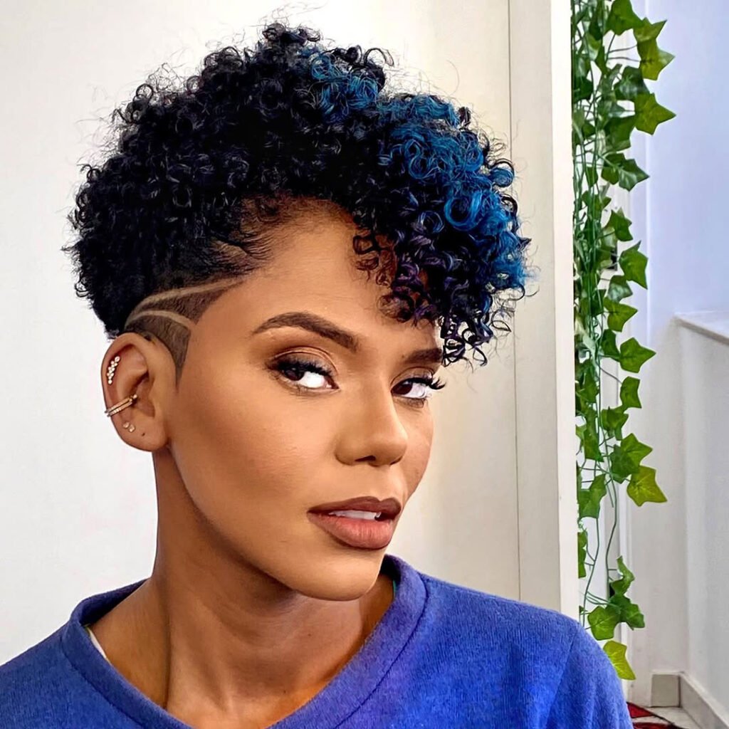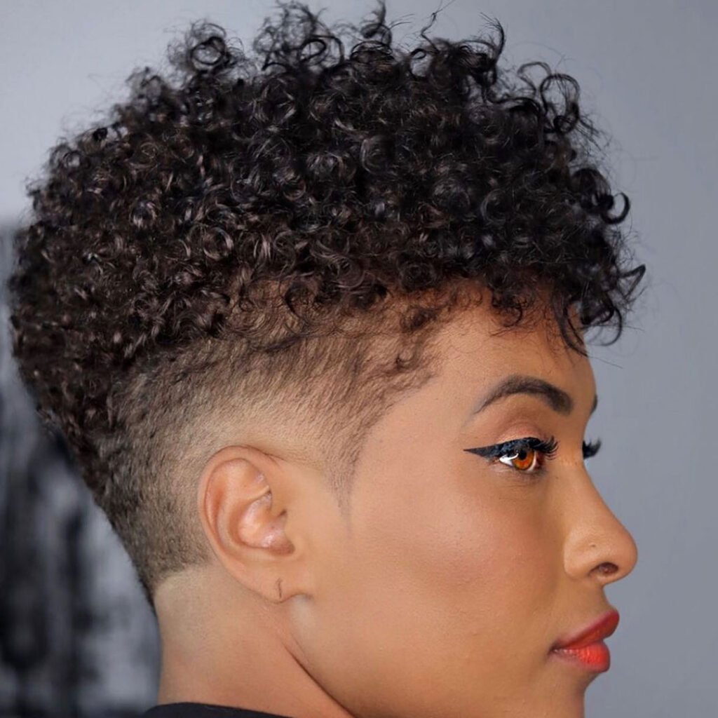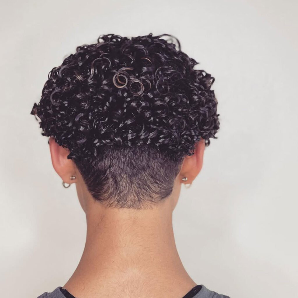 It’s perfect for those who want to keep things short but expressive. The curls bring softness, the shave brings boldness.