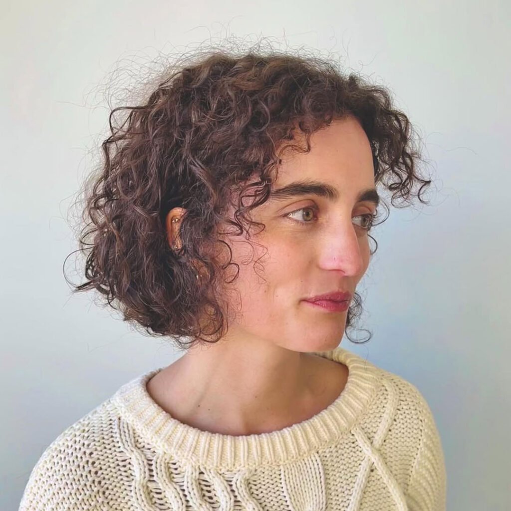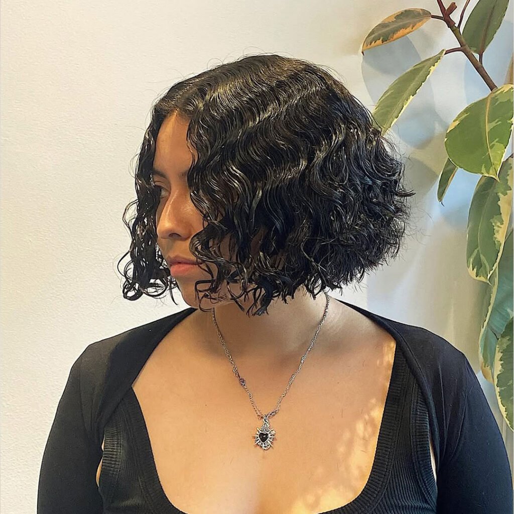 This cut brings structure and flow together in the most elegant way. With shorter curls in the back and longer ones near the front, the inverted bob creates a soft angle that flatters the jawline.