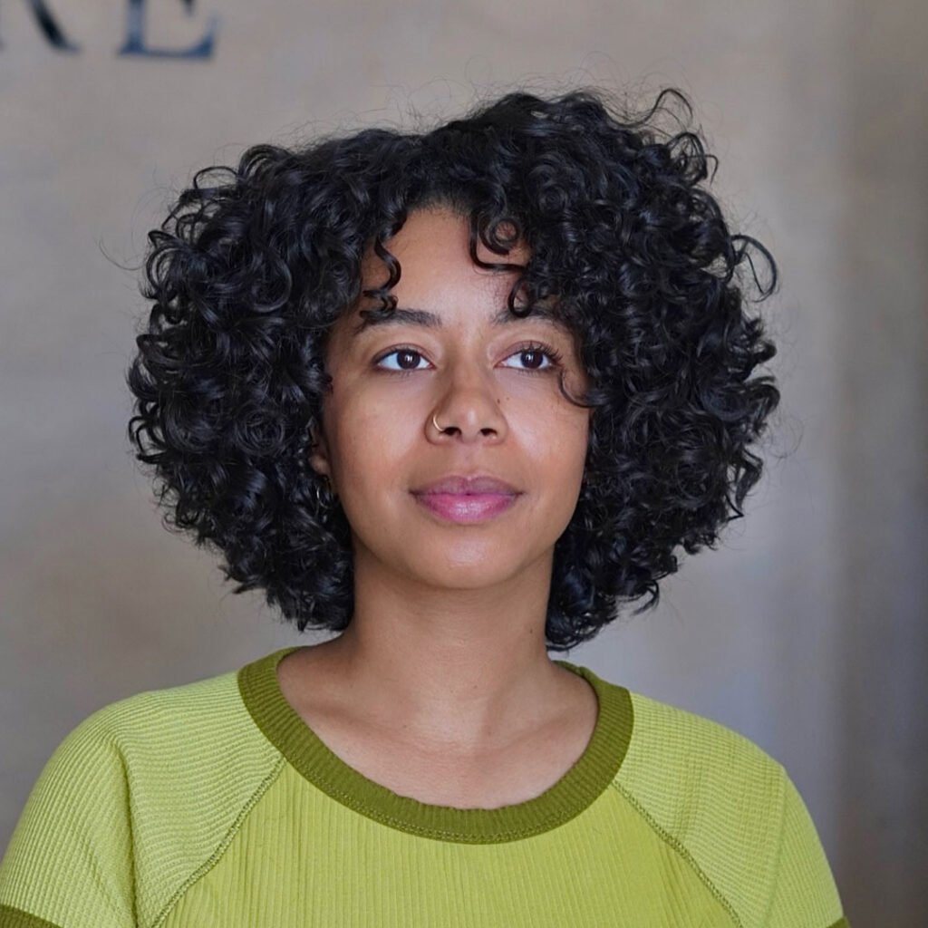 Shorter layers at the crown add lift, while longer ones shape the face. It’s a cut that celebrates curl definition without being bulky.
