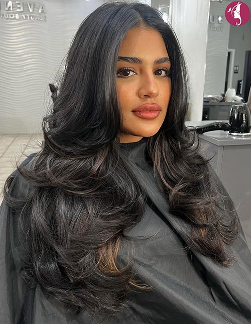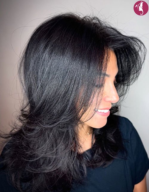 It works beautifully on thick to medium densities, enhancing natural body while framing the face delicately. The cascading layers give a feathered silhouette that pairs well with curtain bangs or soft waves. Styling with round-brush blowouts maximizes its signature “butterfly wing” effect.