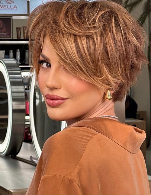 Think of this as the pixie’s messy-chic sister—short, light, and full of movement instead of sharp lines. It’s ideal for anyone who wants volume without trying too hard, especially if your hair is naturally wavy or soft-straight.