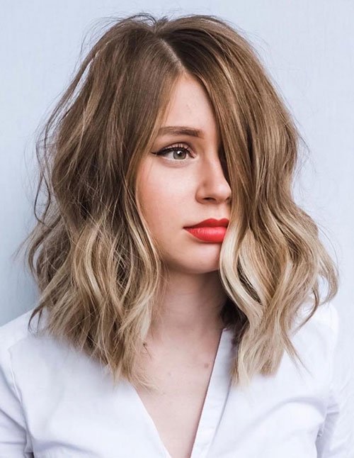 A Lob For Fine Hair Round Faces should fall below the jawline with a slight longer front for balance.Adeep side part and soft bend in the front pieces help create a slimming, lengthening look.