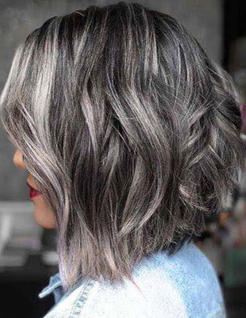 This style combines rich brunette undertones with soft, silvery streaks for a multidimensional finish. The warm base tone gives the hairstyle depth, while the silver highlights add a luminous sheen that catches light beautifully. It’s a stunning choice for anyone transitioning to gray or seeking a subtle salt-and-pepper effect.