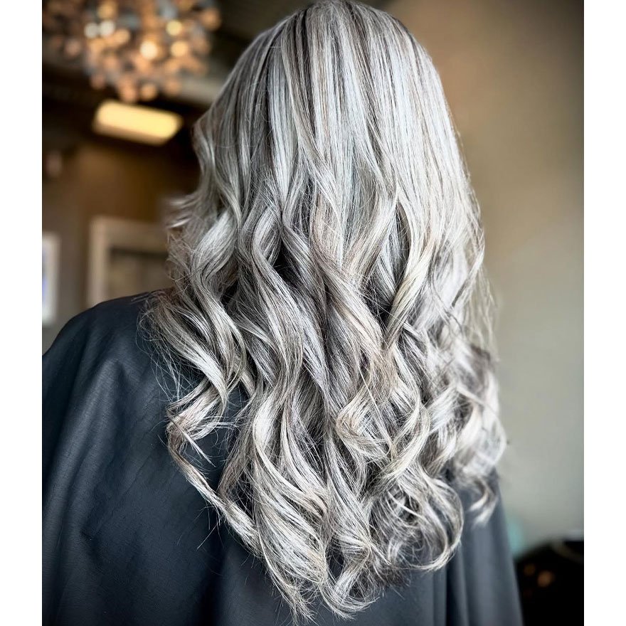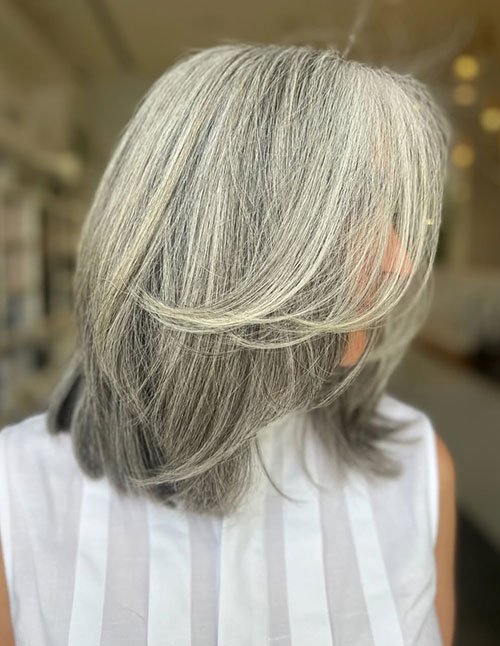 Gentle layering creates movement without sacrificing fullness or density. The seamless transition between shades delivers a refined and graceful transformation. This style is perfect for embracing gray with confidence and sophistication.