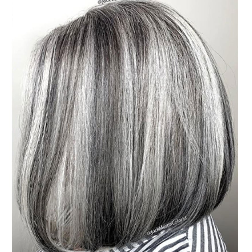 The gradient bob is all about subtle sophistication. It blends dark roots with icy silver ends, giving the illusion of seamless color transition and depth. The short length keeps it modern and manageable, while the gradient effect adds movement and brightness around the face—perfect for women embracing their natural gray in style.