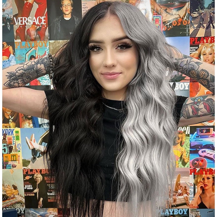 This daring look divides the hair into two contrasting halves—one side silver, the other deep charcoal. The result is bold and artistic, perfect for women who love standing out. The key is balancing both tones evenly so the look stays chic rather than overly dramatic.