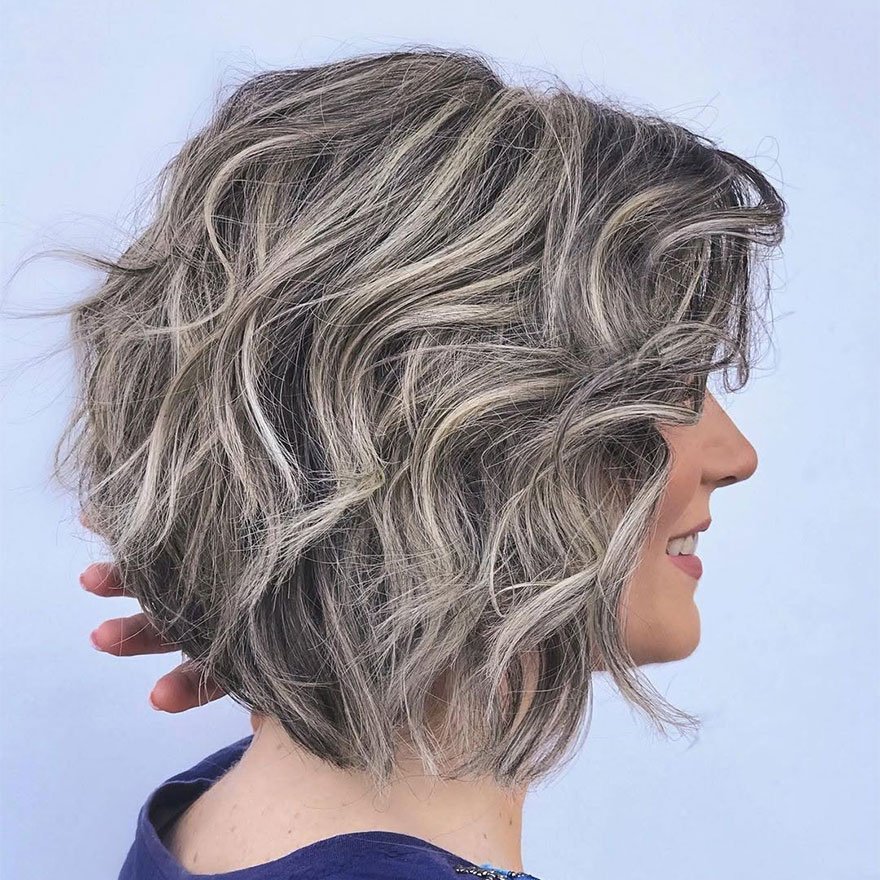 A textured bob with salt and pepper hues offers sophistication with a twist. The subtle blend of silver and charcoal tones brings out dimension, while the tousled layers keep it modern and chic. It’s ideal for women who prefer manageable, medium-length styles that still feel stylish and current.