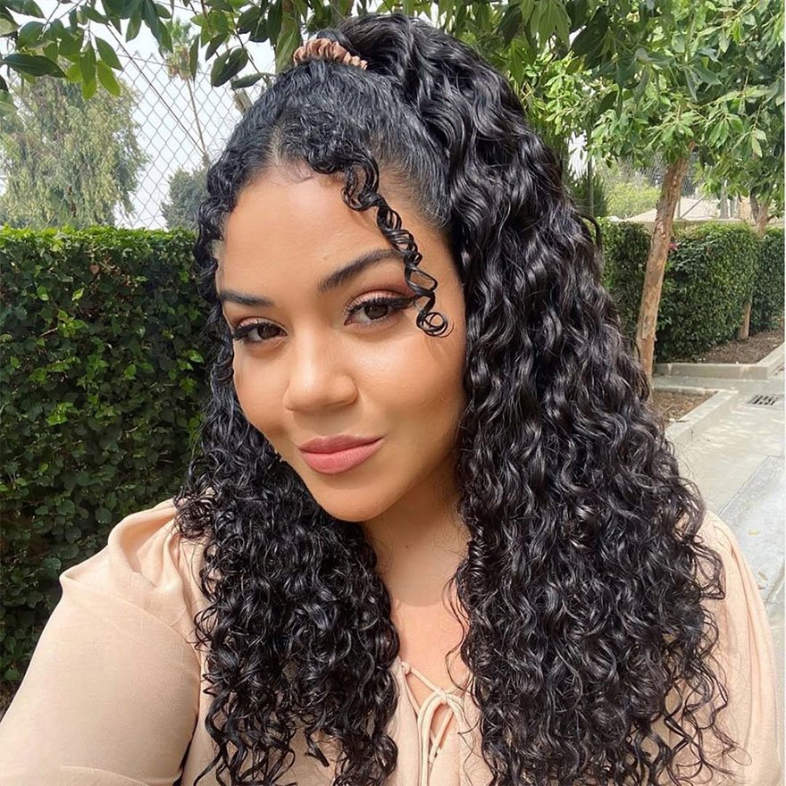 Half-up styling balances practicality with romantic texture. Pulling the top section upward enhances crown volume while allowing curls to flow freely. It works well for both everyday wear and special occasions.