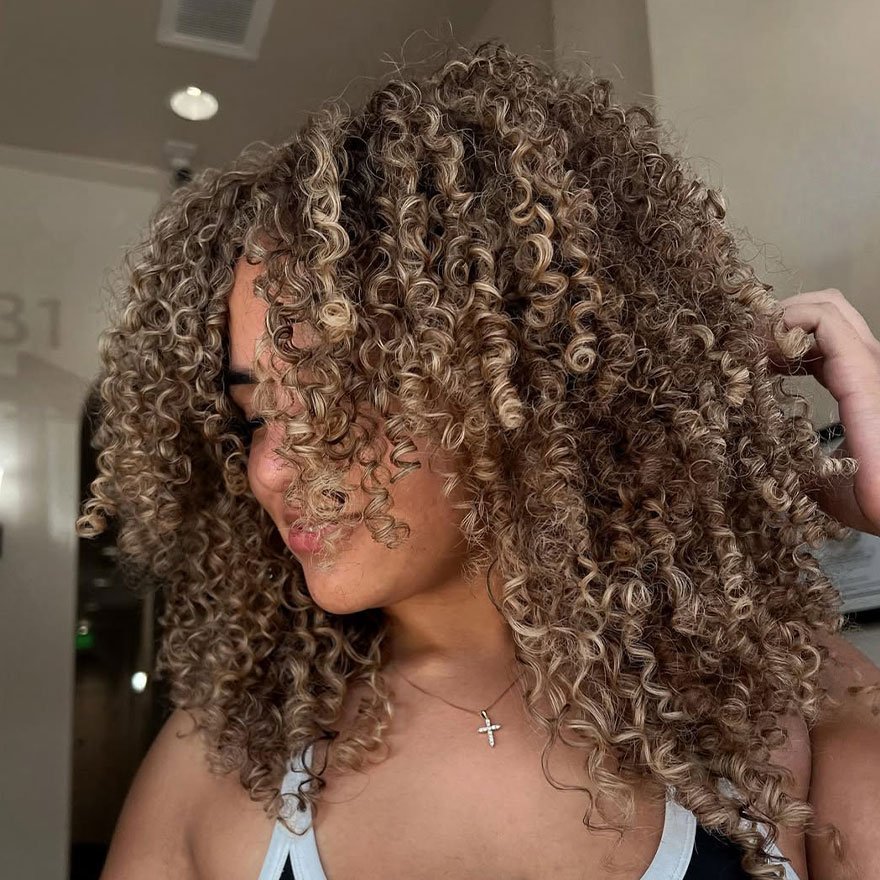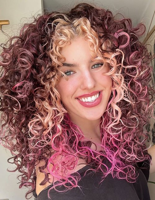 Highlights can emphasize curl definition by catching light at different angles. Maintenance includes color care and moisture treatments. The overall look feels youthful and vibrant.