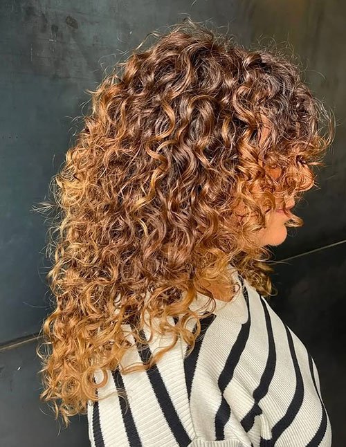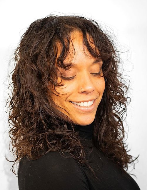 Curly Layered Cut with Wispy Fringe