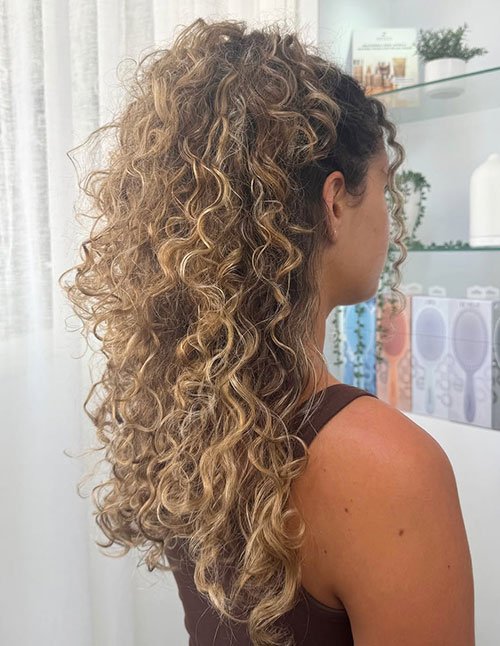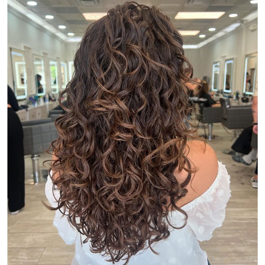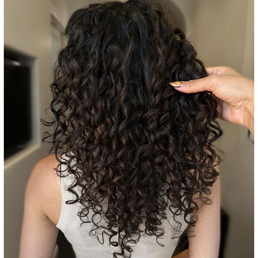 Viewing curls from the back highlights layering precision and dimensional flow. Long layers prevent flatness while allowing curls to stack naturally. Movement becomes visible from every angle.