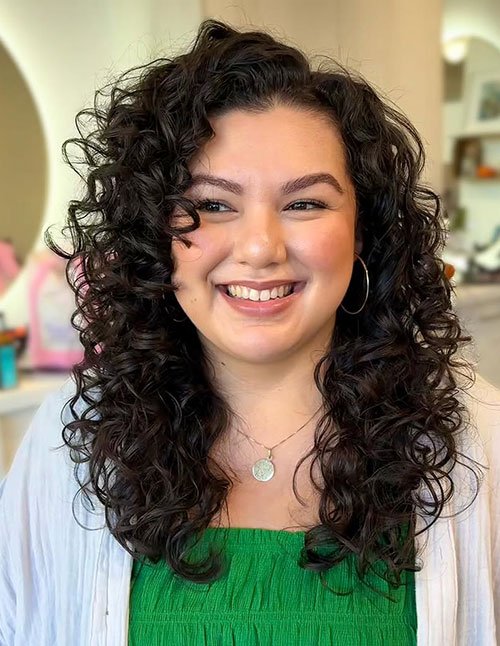 Long Curly Layers add depth, shape, and flow to your curls, preventing them from looking bulky or weighed down. Each layer enhances your natural curl pattern, giving your hair more dimension and bounce. It’s ideal for women who love to embrace volume but want their curls to fall naturally and softly.