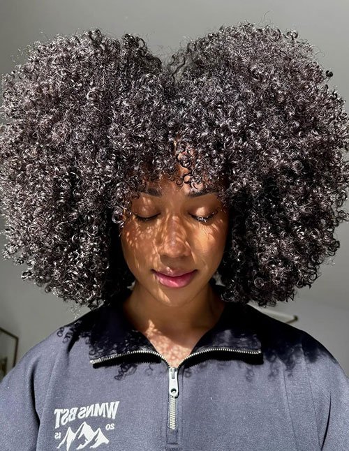 The Short Grey Coily Cut proves that silver curls can be just as bold and beautiful as any color. This hairstyle embraces maturity with confidence — tight coils shaped close to the head for a clean, elegant silhouette. It’s low-maintenance but always makes a statement.