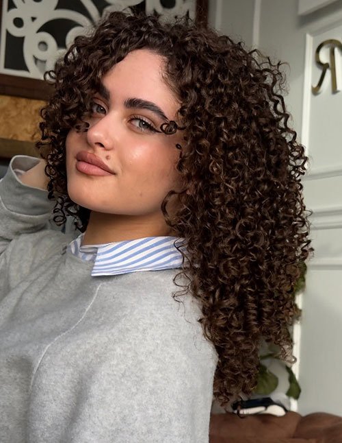 Brunette Curly Layers add dimension and richness to dark curls, bringing out subtle tones of chocolate and caramel with every bounce. The layering gives movement and shape, preventing the curls from looking too dense. It’s flattering, soft, and full of life.