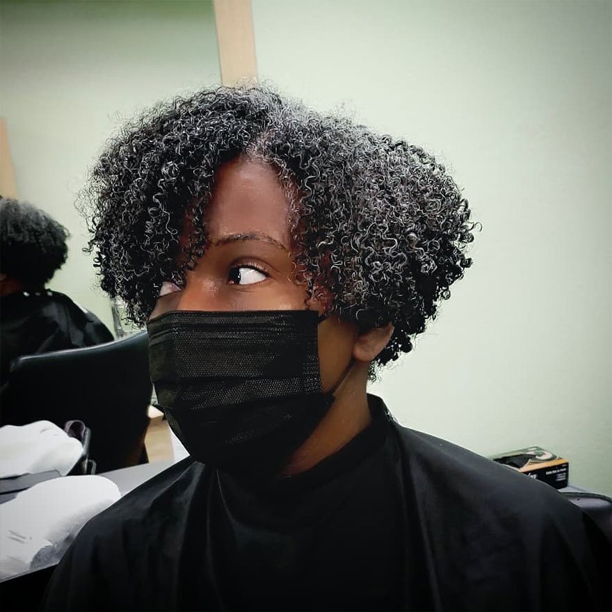 This haircut works well for people transitioning into embracing natural texture. Styling options remain flexible for different occasions. Consistent trims maintain shape and health.