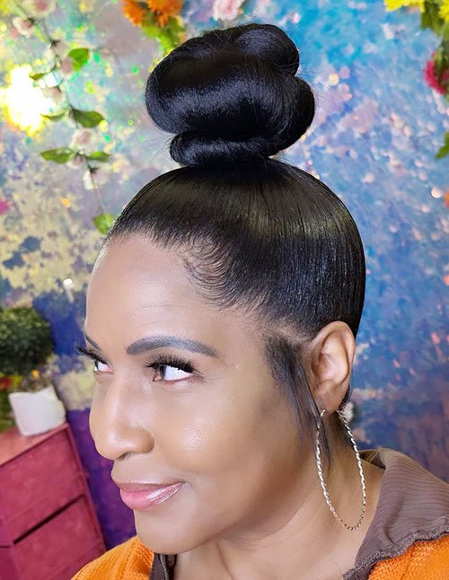 This style suits oval and heart face shapes especially well, but it works for everyone with a few loose pieces. Maintenance is super low: just a hair tie, two pins, and a quick tug to soften it. Try twisting the bun instead of wrapping it tightly for a fluffier, more romantic finish.