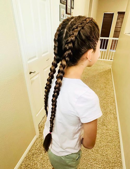 Double braids are the ultimate “cute but practical” school hairstyle. They keep your hair controlled all day, even in windy fall weather or busy class schedules. This look suits most face shapes, and it’s especially flattering if you like a sporty, youthful vibe. Styling level is medium if you’re new to braiding, but it gets easy fast with practice.