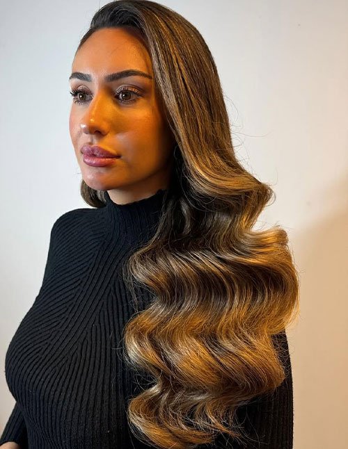 This one is for anyone who loves big hair energy without the heavy, stiff feel. Root-lifted waves focus on volume at the crown, then soften into waves through the lengths. It suits round faces beautifully because height at the top creates a more balanced silhouette.