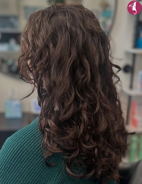 This style is for anyone who loves curls… but wants them softer and more wearable. Curled-to-wavy hair starts with curls, then gets brushed out into loose, flowing waves. It suits almost all face shapes and works best on medium to long hair for that draped effect.