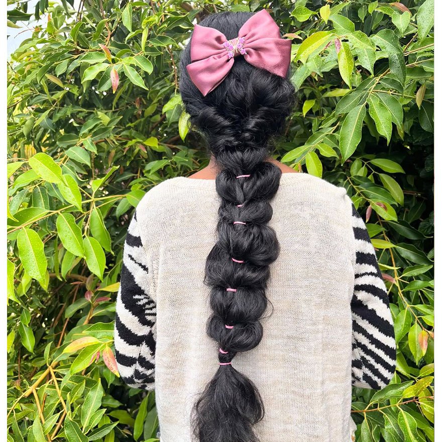 This look is ideal for birthdays, parties, date nights, or school events. It’s best suited for long or medium-length hair but can be adapted for shorter styles too. The bow detail makes it stand out, giving you a polished and feminine vibe without the hassle of traditional braids.