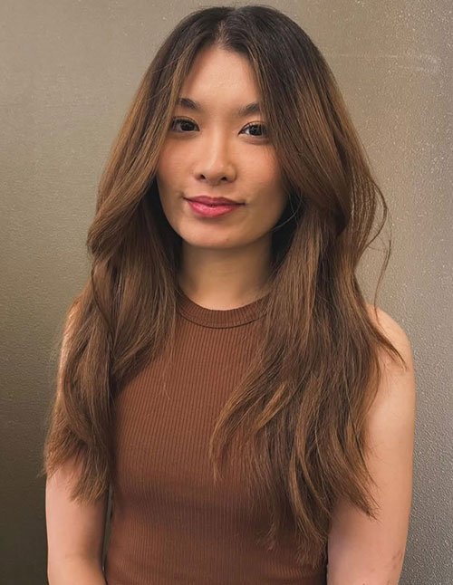 This haircut is all about simplicity and length preservation. Minimal face-framing keeps the structure subtle while allowing the hair’s natural density to shine. It suits long, straight hair best and appeals to those who prefer clean lines.