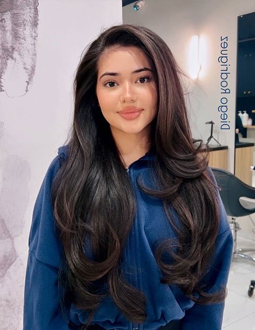 Designed to balance volume and control, this haircut uses long layers to reduce heaviness while keeping the hair full and luxurious. Face-framing pieces soften the front and create structure without sharp lines. It is ideal for thick or dense hair and suits most balanced face shapes.