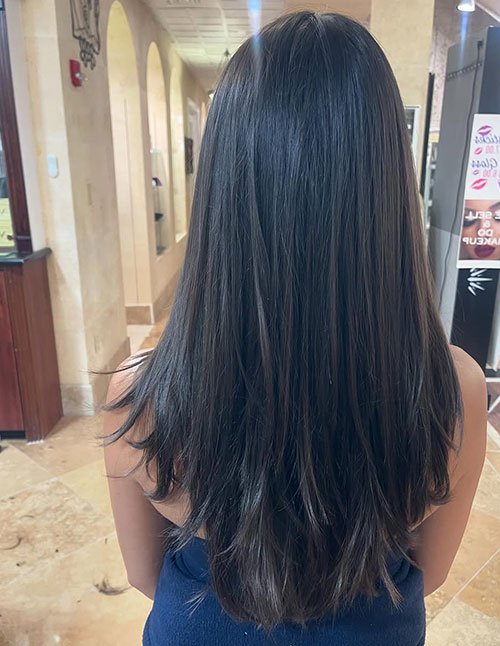 Long Straight Layers U-Cut Back View